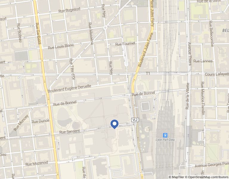 In front of the train station of Part-Dieu. Metro B station Part-Dieu Tramway: T1 and T3, Rhônexpress 14 bus lines. 3 Carparks : Parking Cuirassiers, entrance rue des Cuirassiers and rue du Docteur Bouchut Parking Oxygène, entreance rue Bonnel Parking Garibaldi-Bonnel, entrance rue Bonnel